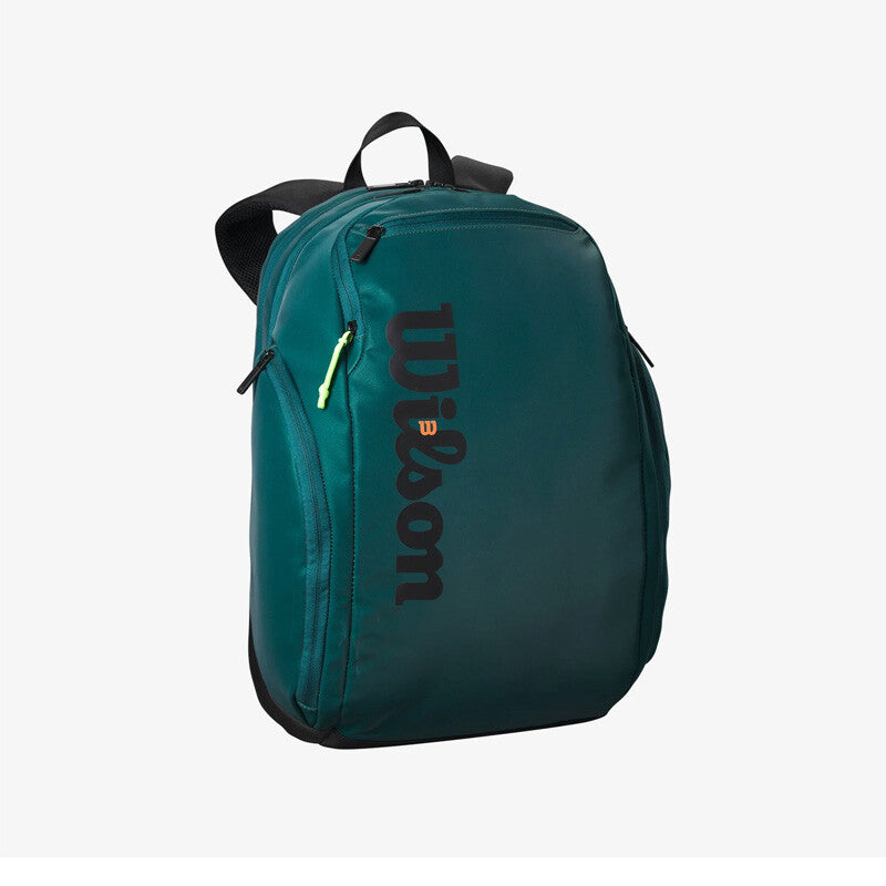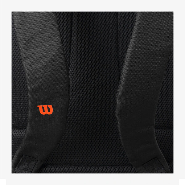 Prized for its best-in-class functionality for tennis players, Wilson's Blade Super Tour Backpack provides hands-free convenience and room for all the essentials. Inspired by the Blade V9's sleek, dynamic design, this spacious backpack has a padded compartment for up to two rackets and another for a laptop or tablet. A ventilated pocket is designed to separate a pair of shoes from the rest of the bag. Other compartments store gear, equipment and personal effects. Locking zippers keep valuables secure, while the adjustable straps make it comfortable to carry.
